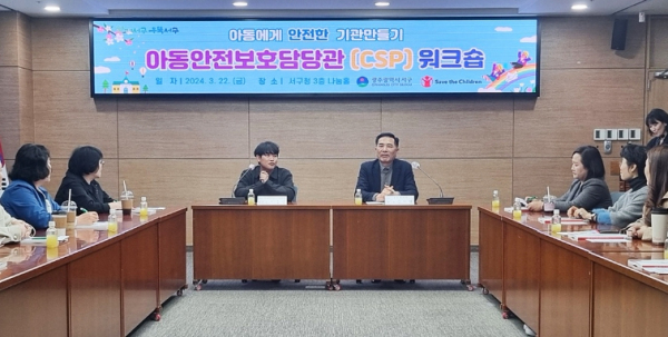 [남도저널 김홍열 기자] 광주광역시 서구가 세이브더칠드런 광주서부지역본부와 아동 보호를 위한 기관 차원의 책임과 제도적 장치 마련을 위해‘아동에게 안전한 기관 만들기’사업을 진행한다.