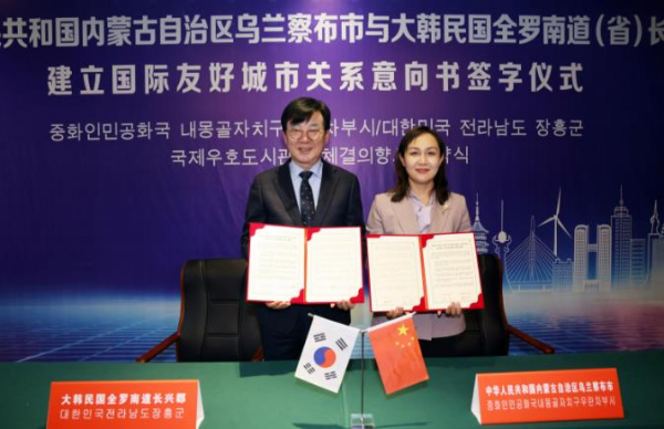 21일 장흥군은 내몽고자치구 우란차부시와 새롭게 우호교류 도시 협약을 체결했다.