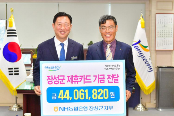 군은 26일 김한종 장성군수와 나문선 엔에이치(NH)농협은행 장성군지부장 등이 참석한 가운데 ‘장성군 농협 제휴카드기금 전달식’을 가졌다.