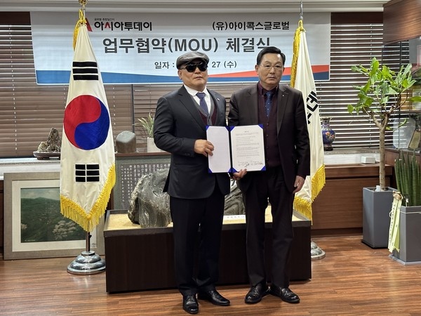 우종순 아시아투데이 대표이사와 김동범 아이콕스글로벌 공동대표는 27일 아시아투데이 본사에서 장애인 방송사업 진출을 위한 협약식을 맺고 장애인들의 시청권 확보와 권익 향상을 위해 협력해 나갈 계획이다.