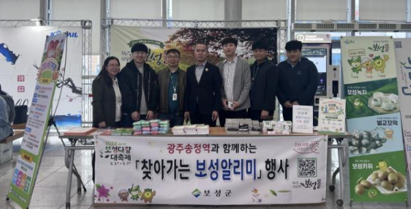 이번 행사는 대도시에서 광주 간 대중교통을 이용하는 국내외 관광객과 봄 나들이 여행객을 대상으로 지역 우수 농특산물을 구매할 수 있는 온라인 직거래 장터 ‘보성몰’과 오는 5월 3일부터 5월 7일까지 개최되는 ‘제47회 보성다향대축제’, ‘고향사랑기부제’ 등을 동시에 홍보해 역사 이용객들의 눈길을 끌었다.