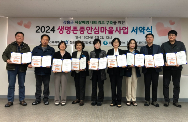 [남도저널 양용숙 기자] 장흥군은 2일 장흥읍 9개 기관과 함께 ‘2024년 생명존중 안심마을 사업’ 서약식을 진행했다고 밝혔다.
