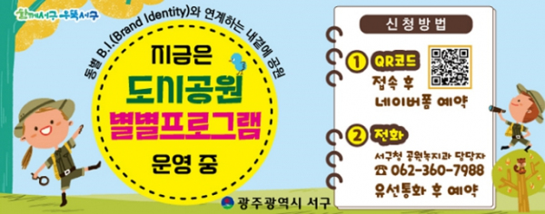 [남도저널 김홍열 기자] 광주광역시 서구가 4일부터 10월 31일까지 동별 BI(Brand Identity)와 연계한 도시공원 별별체험 프로그램을 운영한다.