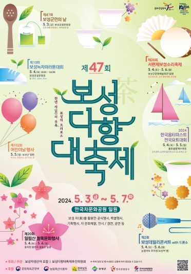 올해 보성다향대축제는 47회를 맞아 5월 3일부터 5월 7일까지 한국차문화공원 일원에서 개최된다.