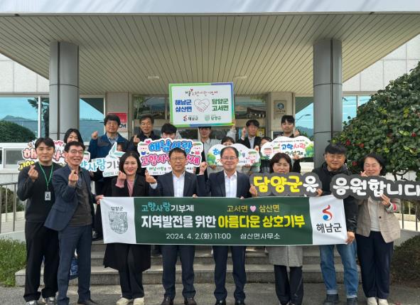 이날 고서면과 해남군 삼산면 직원 30명은 함께 고향사랑기부제의 확산을 도모하고 양 지역 간의 상생발전을 응원하기 위해 상호 교차 기부에 동참했다.