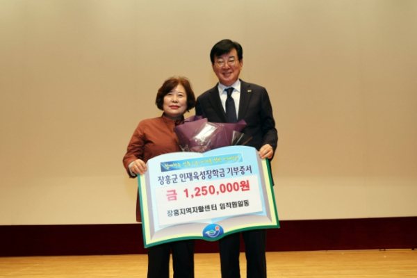 12일 장흥라이온스클럽(회장 김기철)는 창립 50주년을 맞아 회원들의 마음을 모아 500만원을, 장흥지역자활센터(센터장 위수미)에서는 개관 20주년 기념식에서 임직원들의 뜻을 모아 125만원을 장학회에 기탁했다.