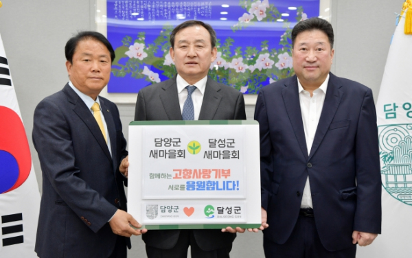 [남도저널 김종민 기자] 담양군새마을회와 달성군새마을회이 12일 담양군청에서 고향사랑기부금 상호 기탁식을 개최했다.