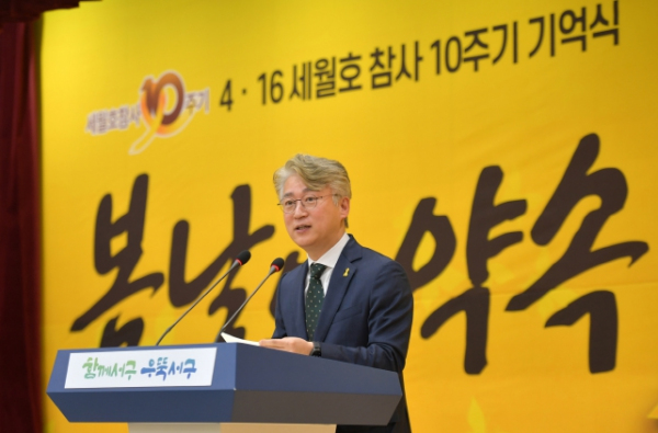 김이강 서구청장은 “별이 된 아이들의 명복과 소중한 이들을 떠나보낸 유가족을 애도하고 사회적 참사 없는 세상에서 국민 모두가 안전한 사회에서 살아갈 수 있기를 간절히 바란다”며 “끊임없는 반복 교육 및 훈련을 통해 어떤 재난이 일어나도 대응할 수 있는 종합체계를 마련하고 현장 역량을 강화해 재난 대응력을 높여 다시는 이런 아픔이 발생하지 않도록 노력하겠다”고 말했다.