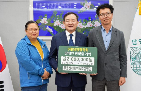 [남도저널 김종민 기자] 담양군은 지난 15일 무등산체험영농조합법인(대표 김명우)에서 지역인재 육성을 위해 장애인 장학금 2백만 원을 기탁했다고 전했다.