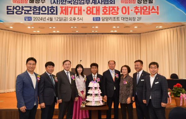 [남도저널 김종민 기자] (사)한국임업후계자협회 담양군협의회는 지난 12일 담양리조트에서 제7대 배정수 회장과 제8대 장현필 회장의 이·취임식을 개최했다.