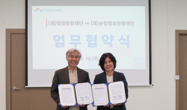 [남도저널 김종민 기자] (재)담양군문화재단(대표이사 진옥섭)은 (재)순창발효관광재단(대표이사 선윤숙)과 지난 18일 순창발효테마파크에서 지역문화·관광 활성화 및 공동발전을 위한 업무협약을 체결했다.