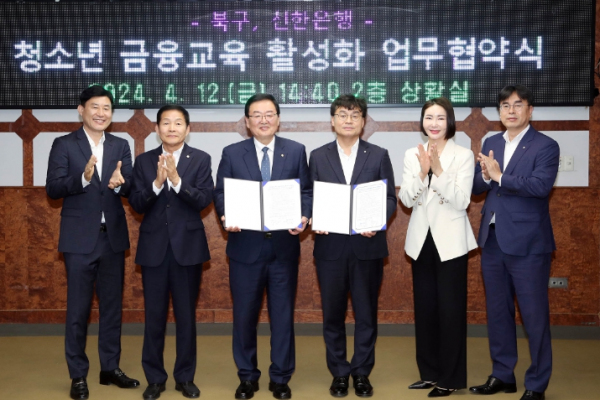 23일 북구에 따르면 ▲북구청 ▲신한은행이 함께한 ‘청소년 금융교육 활성화 업무협약’이 지난 12일 체결됐다.