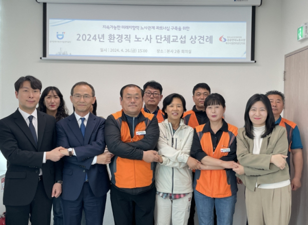 [남도저널 이운현 기자] 광주광역시북구시설관리공단은 본사 회의실에서 26일 노사 관계 발전을 위한 2024년 환경직 단체교섭 상견례를 진행했다.