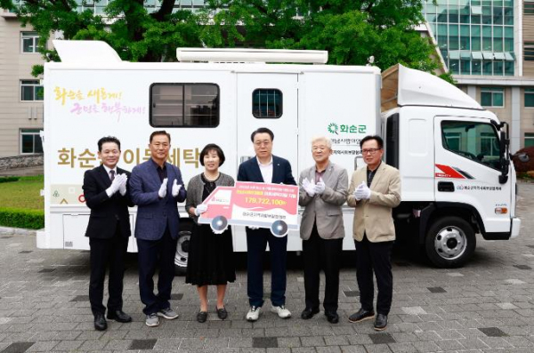 이날 이동세탁차량 전달식에는 구복규 화순군수, 김동극 전남사회복지 공동모금회 사무처장, 양동만 화순군지역사회보장협의체 민간위원장 등 협의체 위원이 함께했다.