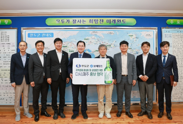 업무 협약식은 완도군청에서 진행됐으며, 신우철 완도군수와 보해양조 서용민 전무 등 관계자 10명이 참석했다.