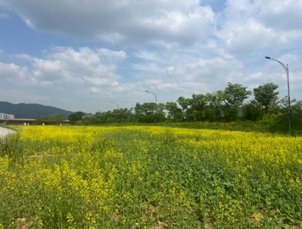 화순천변 꽃길의 유채꽃은 2월에 종자 파종을 시작하여 잡초 제거, 배수 관리 등 세심한 관리를 거친 후 5월부터 개화를 시작했다.