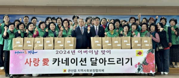 지역사회보장협의체 위원들과 관산새마을부녀회(회장 이종단)에서 200명의 어르신 댁을 방문하여 카네이션을 직접 달아드리고, 준비한 간식꾸러미를 전달했다.