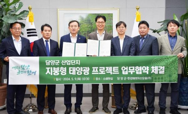 [남도저널 김종민 기자] 담양군은 9일 한강에셋자산운용(주)와 ‘담양군 산업단지 지붕형 태양광 프로젝트 업무협약’을 체결했다.
