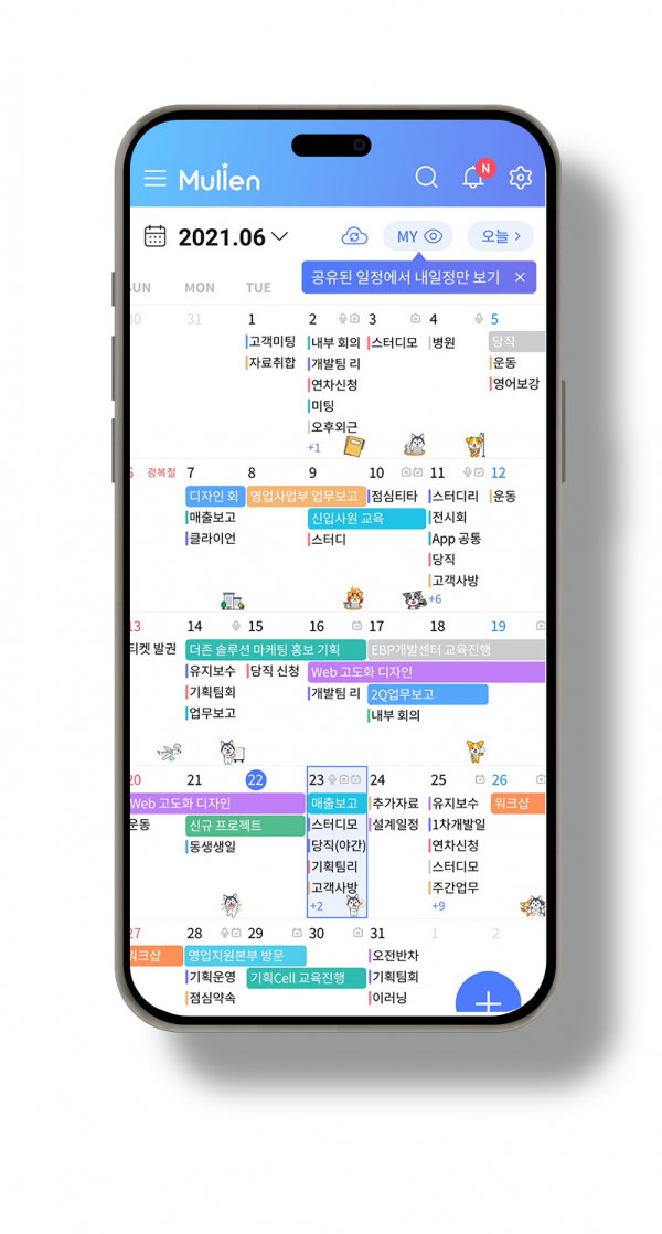 아마란스10(Amarnath10)의 AI 멀티 캘린더 ‘멀린’은 전사, 부서, 프로젝트, 개인 등 회사 내 모든 일정을 하나의 캘린더에서 관리해준다. 통합 검색, 퀵 메뉴, 음성 메모, 댓글과 실시간 피드백, 알림, 스티커, 지도 등록, 자료 첨부 등 다양한 기능을 갖춰 빠르고 정확한 소통과 협업, 자료관리까지 해결할수 있게 구현했다.