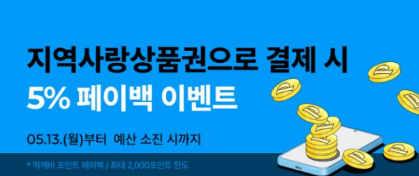 담양군은 지난 5월 1일부터 제23회 담양 대나무 축제의 성공을 기원하며 5월 한 달간 ‘먹깨비’ 특별 쿠폰 발행 이벤트를 실시하고 있어, 함께 이용하면 더 많은 혜택을 누릴 수 있게 된다.