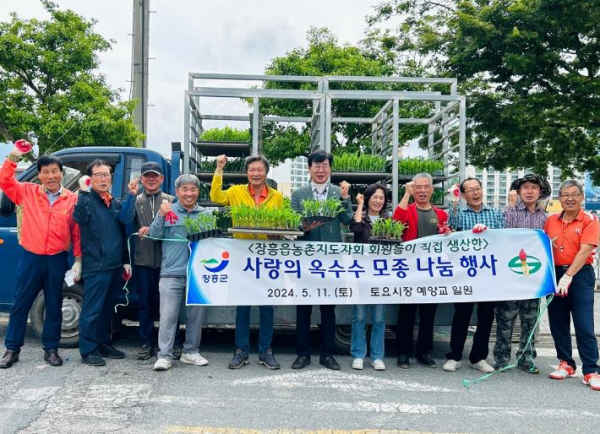 [남도저널 양용숙 기자] 한국농촌지도자장흥군장흥읍회는 11일 회원들이 직접 생산한 옥수수(미흑찰) 모종 8천주를 토요시장을 방문하는 관광객 및 군민들에게 무료로 나눠줬다.