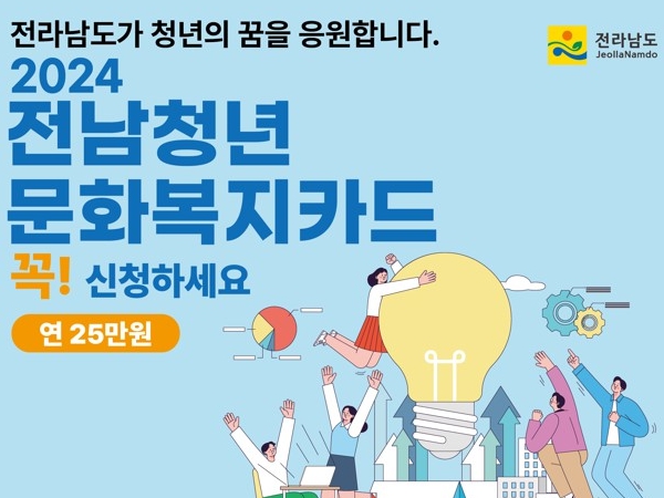 [남도저널 박기철 기자] 목포시는 오는 6월 30일까지 2024년 ‘전남청년 문화복지카드 지원사업’ 대상자를 추가 모집한다.