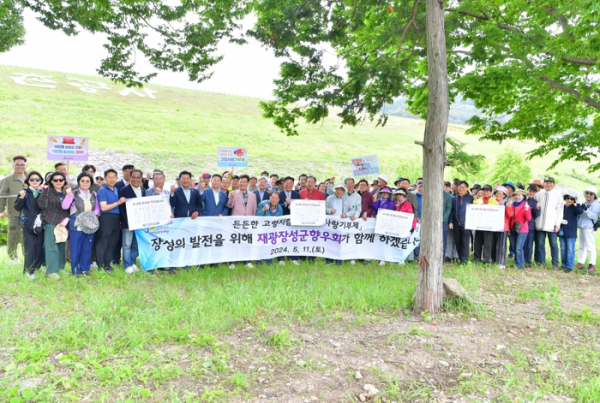 군에 따르면, 최근 장성호 수변길에서 열린 재광장성군향우회 어울림마당 행사에서 김상덕 향우회장을 비롯한 회원 100여 명이 고향사랑기부제 활성화를 위한 ‘퍼포먼스’를 진행했다.