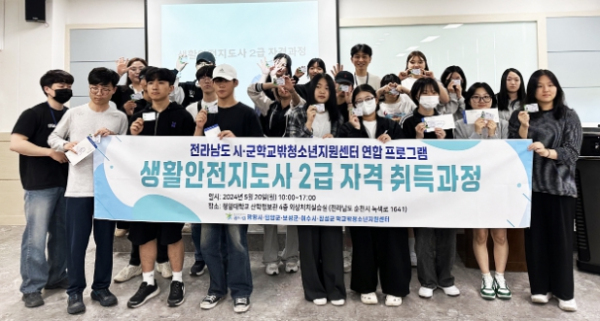 [남도저널 서인호 기자] 보성군은 ‘보성군학교밖청소년지원센터(센터장 홍경욱)’가 지난 20일 순천청암대학교에서 학교 밖 청소년을 대상으로 생활안전지도사 2급 자격증 취득 과정을 운영했다고 밝혔다.
