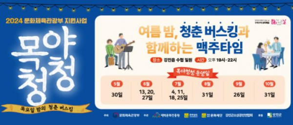 강진군소상공인연합회는 ‘거리의 배경음악’을 목표로 라이브연주가 가능한 전국 거리공연자를 공모해 출연진을 꾸리는가 하면, 강진읍 20여 개 상가와 협의를 거쳐 영국의 펍 문화를 응용한 ‘목야청청 에티켓’을 홍보하는 등 새롭게 선보이는 야간문화의 완성도를 위한 막바지 준비에 한창이다.