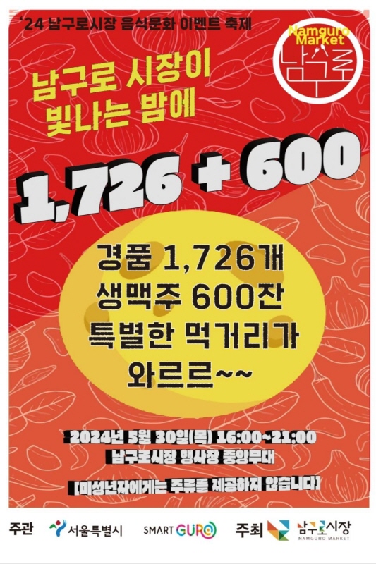 한편, 이번 남구로시장 행사는 서울시에서 진행한 2024년 ‘야간음식문화축제 및 이벤트 지원 공모사업’에 선정된 사업이다.