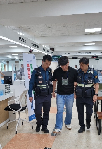 이날 훈련은 특이민원 발생 대비 상황을 가정해 ▲민원인 진정 유도 ▲상급자의 적극 개입 ▲사전고지 후 안전 장비 웨어러블 캠으로 현장 촬영 ▲비상벨 작동(112 경찰 연결) 및 청원경찰 호출 ▲피해공무원 및 방문 민원인 보호 ▲가해 민원인 제재 ▲경찰 인계 등의 절차를 수행하는 내용으로 구성됐다.
