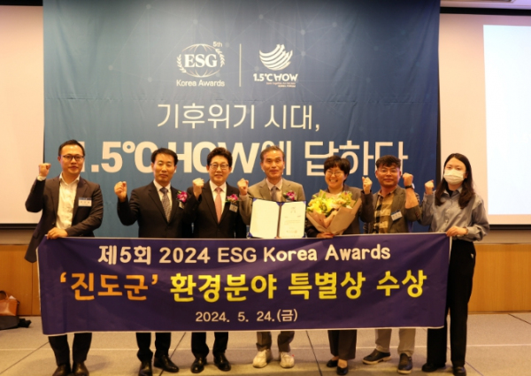 [남도저널 김승귀 기자] 진도군이 '제5회 2024 ESG Korea Awards'에서 환경분야 우수기관으로 선정돼 환경분야 특별상인 서울대 환경대학원장상을 수상했다.
