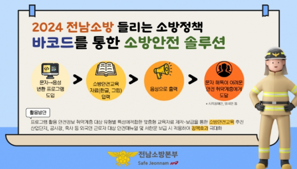 [남도저널 양용숙 기자] 강진소방서는 봄철 소방안전대책의 일환으로 “들리는 소방정책! 바코드를 통한 소방안전 솔루션”을 추진한다고 27일 밝혔다.