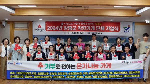 김동극 전남사회복지공동모금회 사무처장은 “나눔에 동참해주신 기부자분들께 감사드리며 장흥군 착한가게 23개소의 신규가입이 어려움을 겪고 있는 이웃에게 큰 희망이 될 것으로 기대한다”고 전했다.