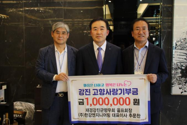 강진군은 지난 29일, 재경향우회 추문찬 골프회장이 고향 강진의 발전을 위해 고향사랑기부금 100만원을 기탁했다고 밝혔다.