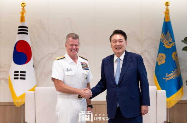 [남도저널 김용범 기자] 윤석열 대통령은 5월 30일 오전 사무엘 파파로(Samuel Paparo) 신임 美 인도태평양사령관을 접견하고, 사령관 취임을 축하하며 연합방위태세 강화를 위해 힘써줄 것을 당부했다.