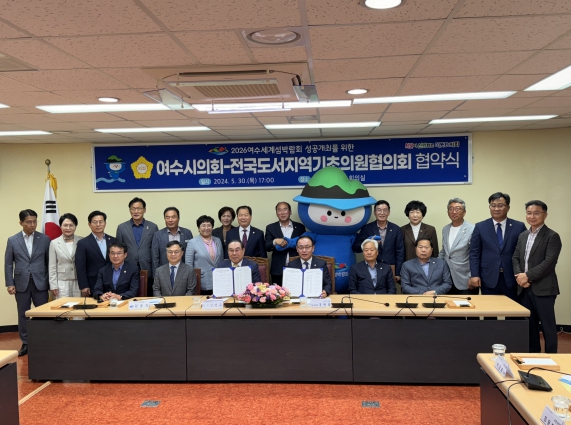 [남도저널 양용숙 기자] 전국도서지역기초의원협의회와 여수시의회가 2026여수세계섬박람회 성공개최를 위한 협약식을 맺었다.