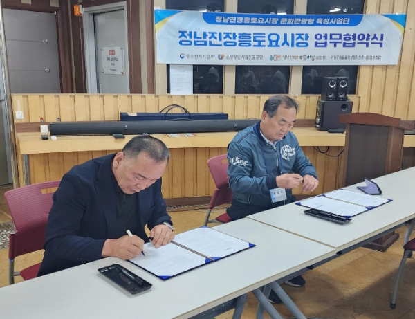 [남도저널 양용숙 기자] 정남진장흥토요시장 상인회와 제주 서귀포 매일올레시장 상가조합이 마케팅 상호협력 업무협약을 체결했다.