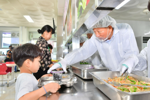 지난 5월 31일 사창초등학교 급식 배식 봉사에 참여한 김한종 장성군수는 “아이들의 건강한 성장을 위해 과일급식 확대 지원을 추진하고 있다”며 “장성산 농산물 소비를 촉진해 농가와 지역경제에 도움이 될 것으로 기대한다”고 말했다.