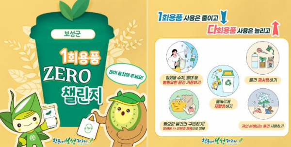 ‘제29회 환경의 날 일회용품 제로 챌린지’는 보건소 걷기 사업과 연계해 보성군민을 대상으로 진행되며, 모바일 앱 ‘워크온’을 통해 참여할 수 있다.