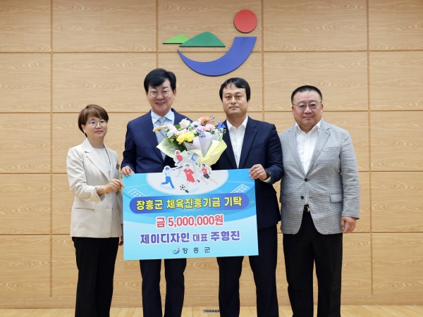 장흥군은 지난 4일 제이디자인 주형진 대표가 체육진흥기금 500만원을 기탁했다고 밝혔다.
