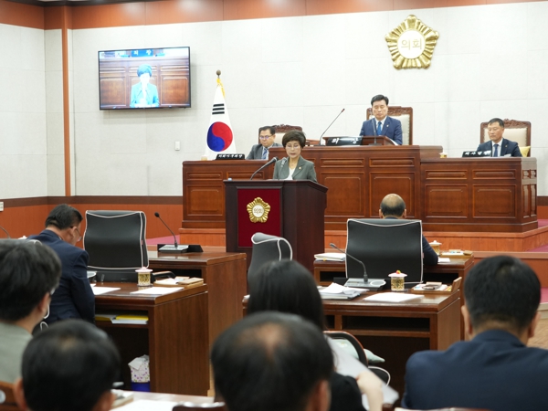 첫 질문자로 나선 홍정임 부의장은 ▲군민들의 건강 증진을 위한 맨발 걷기 길 조성 제안 ▲경로당 입식테이블 설치 확대 추진 ▲어린이들을 위한 대규모 놀이시설 조성 등 군민 복지향상을 위한 정책을 제안했다.