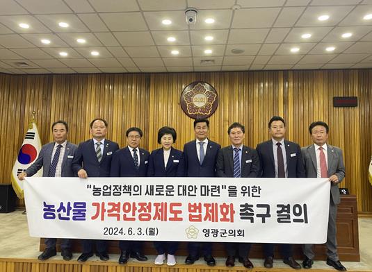 [남도저널 김종훈 기자] 영광군의회는 지난 3일 제280회 정례회 제1차 본회의에서 김강헌 의원이 대표 발의한 '농수산물 유통 및 가격 안정에 관한 법률'개정을 위한 농산물 안정화제도 법제화를 촉구하는 결의문을 채택했다.