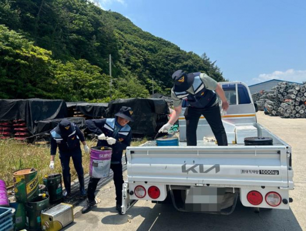 [남도저널 양용숙 기자] 완도해양경찰서는 지난 4일 적극행정(정부혁신)의 일환으로 완도군 소안도 항포구에서 완도해경과 소안해양자율방제대가 합동으로 섬 내 방치된 폐유통을 170여개를 수거하며 해양오염 예방에 기여했다고 밝혔다.