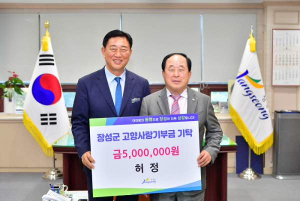 허정 회장은 “내 고향 장성이 더 살기 좋은 곳으로 발전하길 기대하며 기부에 동참했다”면서 “보다 많은 향우들이 동참하기를 바란다”고 당부했다.