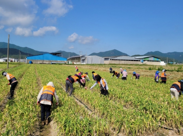 이날 농촌 일손돕기에 참여한 관산읍 남·여의용소방대 30여 명은 약 3,000평 규모의 마늘 재배 농가에서 마늘 수확 등을 실시하며 구슬땀을 흘렸다.