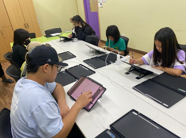 이 날은 갤럭시 탭 S8을 활용하여 무료 어플인 스케치북을 활용한 기본 툴 설명과 캐릭터 그리기, 라인 드로잉 등을 진행했다.