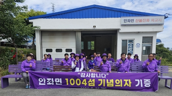 지난 6월 10일 안좌면 주민자치위원장을 비롯한 각 사회단체장과 직원 등 총 23명이 25개의 보라색 1004섬 기념 의자를 기증하여 안좌면에 새로운 보랏빛 바람이 불고 있다.