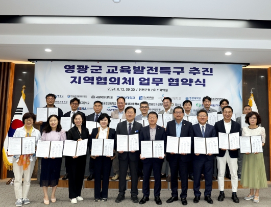 [남도저널 김종훈 기자] 영광군은 지난 12일 지역교육 혁신과 인재 양성 및 정주여건을 개선하기 위해 교육발전특구 추진 지역협의체 업무 협약식을 가졌다.