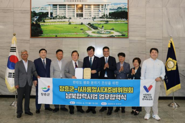 장흥군과 통일시대준비위원회는 정보공유 및 상호협력을 통하여 성공적인 남북 교류사업을 추진하고 한반도의 평화분위기 조성의 공동의 목표를 추진하기로 합의했다.